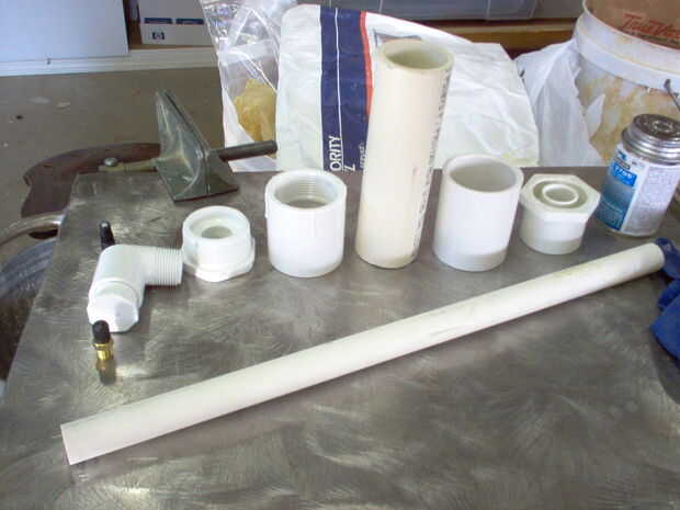 C. una combinación de accesorios para ir de FS (slip femenino) de 1/2" a 1 1/2" FS. Recogí unos diferente combinación de accesorios, cada uno de ellos produciendo un poco diferente aspecto. Esta arma utiliza una 1/2" FS x 1 1/2" MS y una FSxFS de 1 1/2".