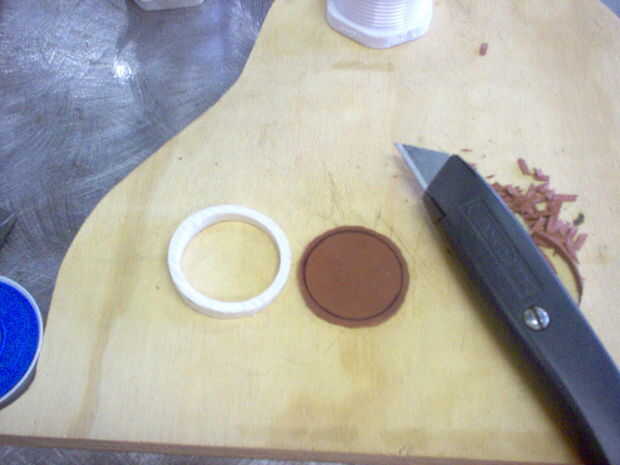 2) cortar el diafragma para caber apenas en el interior de (D) (1 1/2" pies). Se debe ajustar libremente, pero no tiene mucho espacio se deslice de lado a lado.
