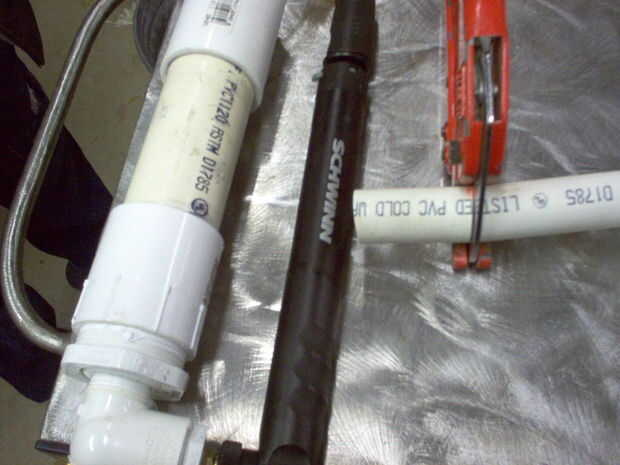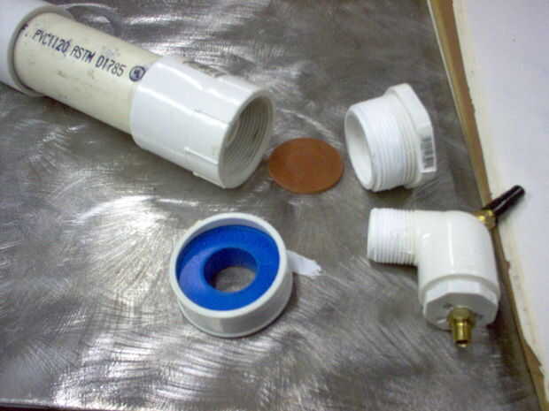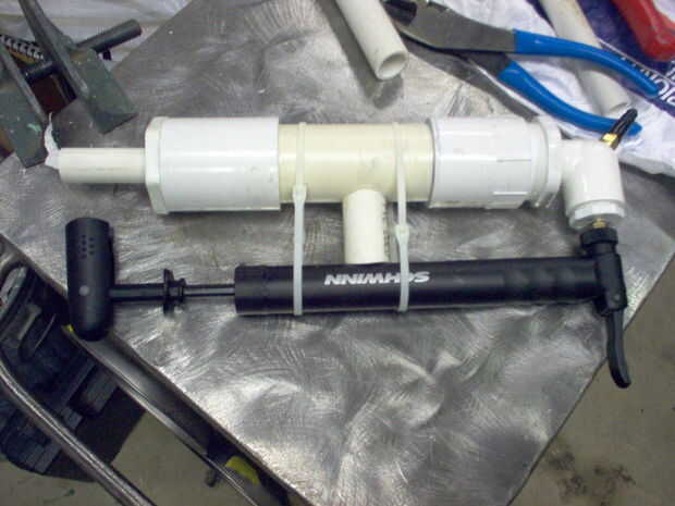 5) Conecte la bomba y fijarlo a la cámara. Cortar una longitud pequeña de PVC, corrugado los extremos para que coincida con la cámara y la bomba, sujeta con un par de abrazaderas de plástico y envuelto con cinta aislante para mantener en su lugar.