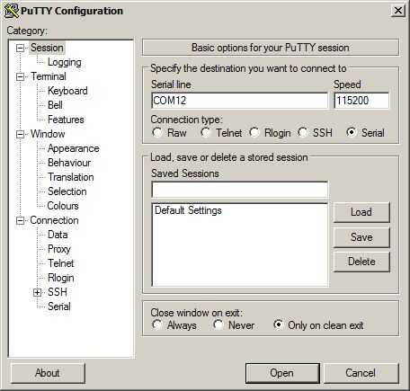 Conectar el Jtagulator a un puerto USB en su computadora local y abrir su software favorito de terminal. Con el propósito de este tutorial, estoy usando masilla en una máquina Windows.