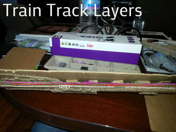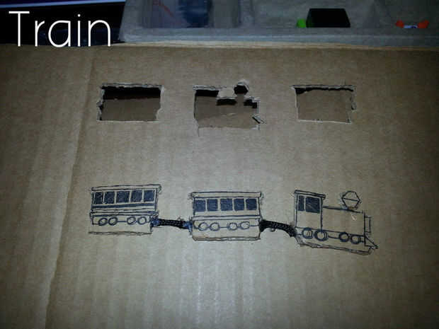 En orden para el tren a moverse se acuña entre dos pedazos de cartón que están separadas por otra pieza. Las dos piezas de cartón guían el tren mientras se mueve. Como se muestra en el cuadro de capas de pista de tren, capas 1 y 3 son las cartulinas de lado, y la capa 2 es donde se encuentra el tren.