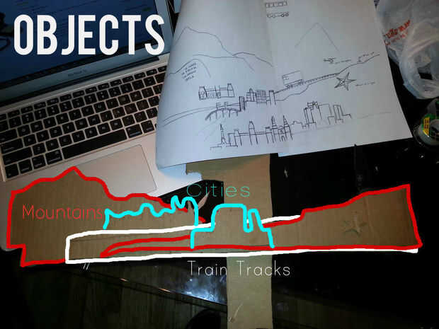El tren era simple. En cuanto a la pista de tren tuve que improvisar un poco. Empecé haciendo sólo recorte de capa 3, ya que sería la parte que miraba a la gente, y quería asegurarse de que viajaría exactamente a donde quería viajar (de modo que parecía que iba detrás de la montaña del Paso.). Después de hacer capa 3 corte el corte de capa 2 y 1 fueron hechas para que el tren podría sentarse entre ellos.