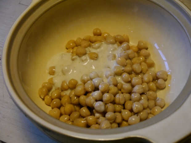 Poner los garbanzos en un plato y mezcle con la mitad de la mezcla de yogur. Añadir las cebollas, junto con los frijoles.
