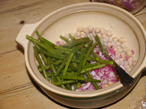 Judías verdes con garbanzos, cebolla morada y especias comino Yogurt (11 / 12 paso)