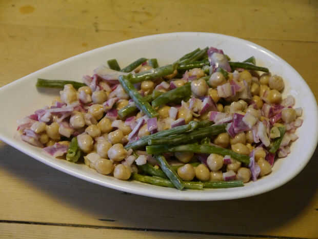Judías verdes con garbanzos, cebolla morada y especias comino Yogurt (12 / 12 paso)