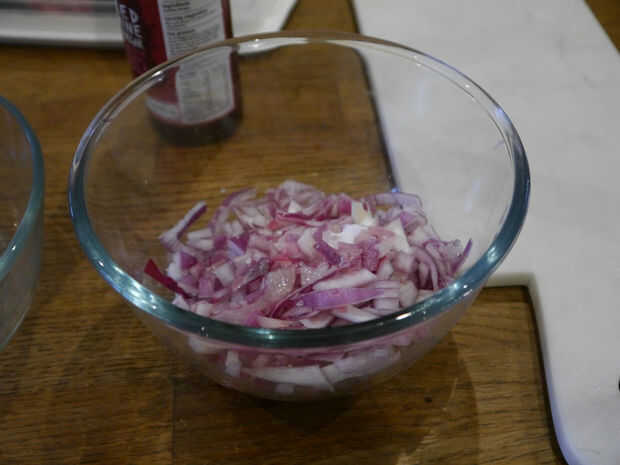Judías verdes con garbanzos, cebolla morada y especias comino Yogurt (2 / 12 paso)