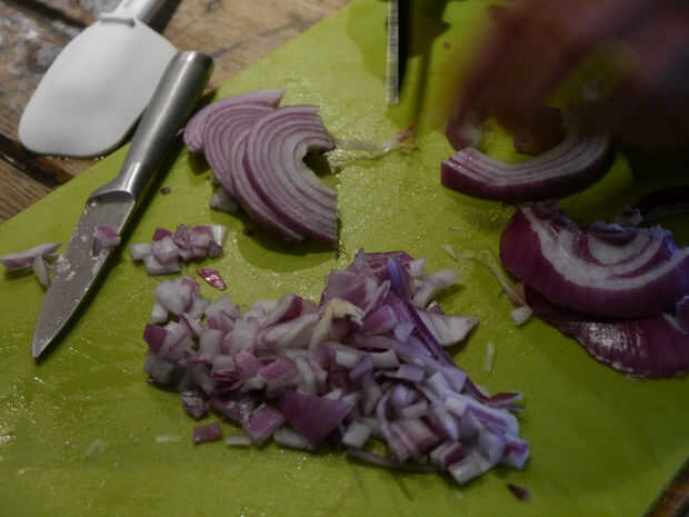 un guiso de invierno que le da una introducción larga frijoles y calabaza chayote. Aprender a utilizar más verduras nuevas; son buenos para usted.Paso 1: Ingredientes Base Picar dos cebollas, dos chiles serrano y un puñado de ajo.Añadir las cebollas