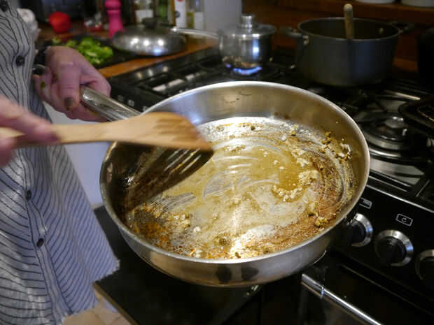 Añadir el ajo y el comino. Mezclar hasta fragante.