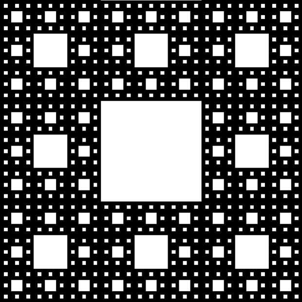 WIDTH = 700; X_MIN = 0; X_MAX = 1; Y_MIN = 0; Y_MAX = 1; RATIO = AUTO; MOUSE_MOVE = true; // recursion // --------- int sierpinski(u, v, w, h, depth, maxdepth) { int val = ((int)(u/w * 3) % 2) * ((int)(v/h * 3) % 2); if(val==0 && depth<maxdepth) { return sierpinski((u*3 % w)/3, (v*3 % h)/3, w/3, h/3, depth+1, maxdepth); } else return val; } // start the computation and convert 0/1 to color // ---------------------------------------------- color rgb(x, y) { return color(sierpinski(x,y,X_SPAN,Y_SPAN, 1, maxdepth) * 255); } // redraw only on effective maxdepth change // ---------------------------------------- int maxdepth = -1; bool preDraw(t) { int d = (int)(mouseX/width*6) +1; bool doit = maxdepth!=d; maxdepth = d; return doit; }