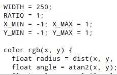 color rgb(x, y) { return color(x*x+y*y); } En pocas palabras, la función rgb() define el color de un píxel en una coordenada dada (x, y) .