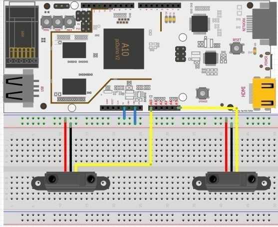 El siguiente diagrama muestra cómo conectar sensores infrarrojos a pcDuino: