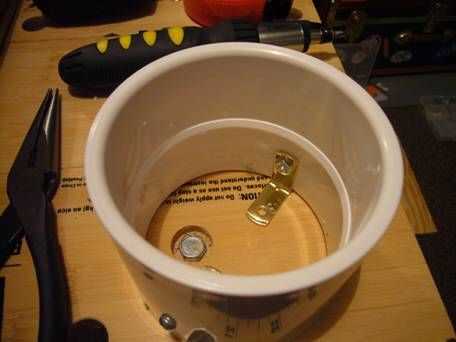 Poner el PVC dentro de la caja mediante tornillos pequeños a través de los orificios del soporte L abiertos (Asegúrese de que al centro de la PVC en la caja).