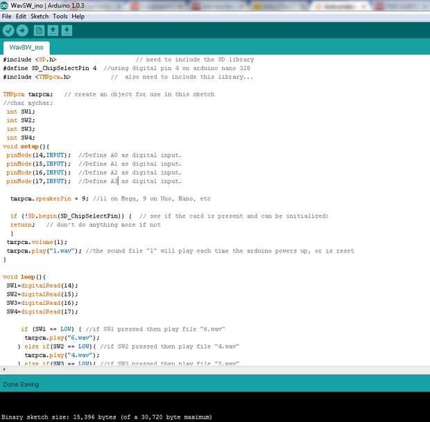 2 - descargar el archivo adjunto WavSW_ino.zip y abrirlo con el sketch de arduino, he intentado copiar y pegar el código del sketch de arduino a instructable pero por alguna razón el texto convertir en basura.
