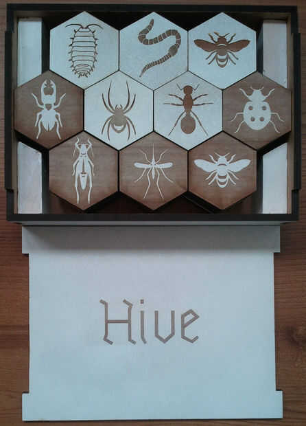 Compré la colmena más de hace dos años y aún si no jugarlo tan a menudo, los me gusta este juego y mostró a amigos. Coincidentemente, un cumpleaños viene, así que ¿por qué no una colmena de madera a medida? Vi un intructable hace un tiempo con una colmena de corte por láser y desde ahora tengo acceso a un fablab con un cortador láser, preparé un archivo vectorial.