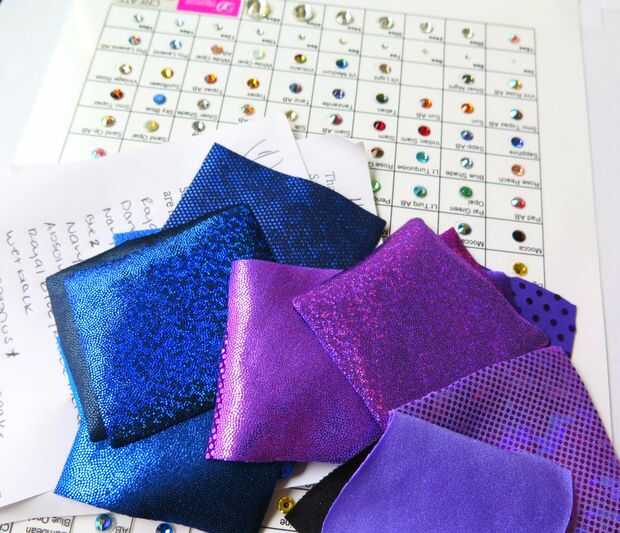 Para averiguar de qué color las piedras y bikini quería, pedí a tela muestras de arenas Ravish y un muestrario de cristal de Swarovski. Absolutamente puede utilizar pedrería regular, que sería mucho más barato. Sin embargo, cristales de Swarovski realmente brillan bajo las luces, y encontré bastante mucho comprarlos por mayor.
