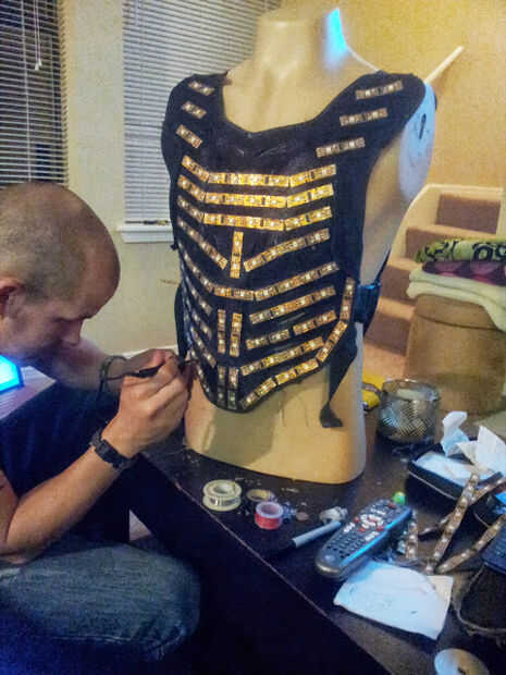 Me gustaria obtener todos los segmentos de mi tira al elemento de juego, y una vez que tenga un diseño que me gusta, después volver atrás y conectar todos los segmentos de la tira. Asegúrese de que todos los puntos de soldadura son buenas y sólidas. Vamos a hacer una prueba antes de la cubierta final de los cables para asegurarse de que, pero es mejor tomar su tiempo y realice esta parte derecha.