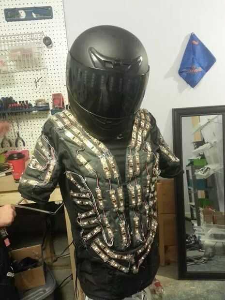 En el cuadro de las rodilleras en esta foto que se puede ver los orificios de cada extremo de cada segmento. Los cables del conector de segmento donde soldadas al extremo de un segmento, entonces funcionaron a través de un orificio en la parte posterior y a través de la siguiente bodega al frente y conexión al segmento siguiente. Este proceso da una apariencia muy limpia, pero requiere mucho tiempo y una cantidad igual de paciencia con el proceso de soldado. Sólo sugeriría esto si es crucial para ocultar mas el cableado y su cómoda con soldadura.