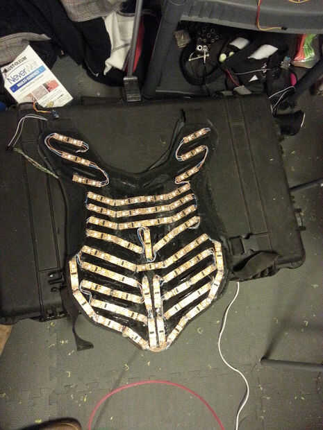 Lo que quiere sobre todo Buscar ahora es una buena ubicación para su tira controlador y batería de litio. En el programa de juegos en este Instructable perneras de funda donde al traje pantalones piernas. Cada pata posee uno de los paquetes de batería de D. Te recomiendo algo similar si su uso de embalajes grandes. Pistolera de la pierna, correas de cintura con los paquetes de las caderas, o paquetes de delgado en la parte posterior de un robusto chaleco todos hacen buenas ubicaciones. Una bolsa de velcro se puede hacer fácilmente en cualquier parte de la demanda para sostener el pequeño micro controlador.