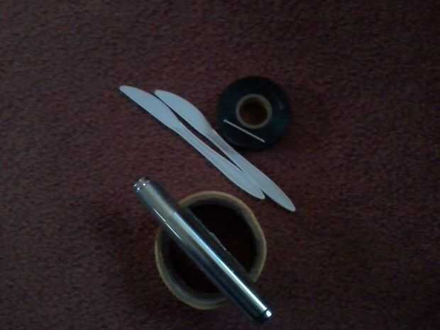 Recoger sus materiales y llevarlos a su lugar de trabajo. Se necesita un soporte de papel higiénico (no importa si es metal como el mío o si es de plástico) que aparte viene en dos piezas con un resorte en algunos cuchillos de corte de plástico que se utiliza en barbacoas y tal, un taladro (no mostrado), tijeras (no se muestra), una broca lo suficientemente grande como para las uñas (no se muestra) , un clavo delgado y la cinta (conducto o eléctrico utiliza tanto en mi prototipo). Opcionales cosas que uso son un perno de cierre, pintura de aerosol y pegamento caliente. También en esto que no hago otro un sólo usé uno tuve que ignorar el pasador de cierre.