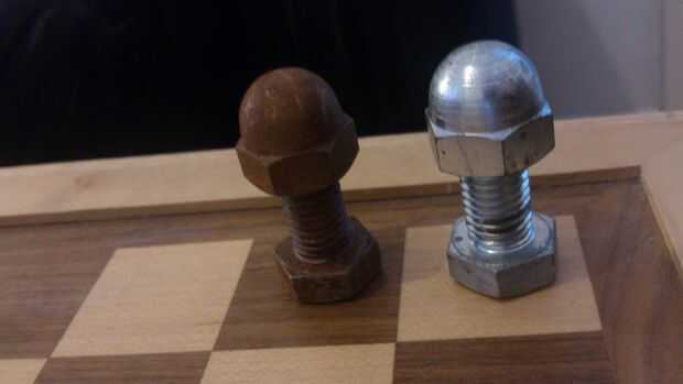 DIY Steampunk Hardware el conjunto del ajedrez - Gomi estilo TV - videos graciosos están aquí hacer un ajedrez fresco, retro, steampunk-inspirado conjunto de hardware surtido, encontrada mesa y algunos productos químicos comunes. Este proyecto es ráp