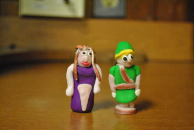 Las reinas de ambos lados es un proceso similar. Para hacer el vestido y el cuerpo, estirar de forma cilíndrica, ligeramente piramidal. Para hacer los brazos, estirar pequeños cilindros también. Para hacer las manos, tomar bolitas de arcilla que son proporcionales a los brazos y simplemente pulse una herramienta en la arcilla para hacer dedo y pulgar formas. Hacer las cabezas de la misma manera que se hacen las cabezas de los Reyes. El pelo también se hace de la misma forma para ambas figuras; corte tiras delgadas de arcilla que se redondean y capas sobre la cabeza de la figura. Recuerde que la única diferencia real en estas cifras es los colores de la arcilla y utilizar las imágenes para referirse a los colores especificados.