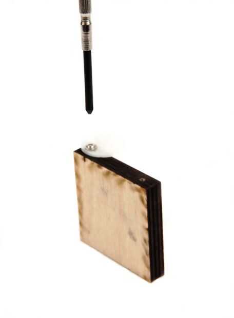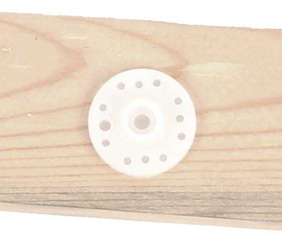 Utilizando uno de los tornillos de plata con el servo, fije la rueda a la madera. Esto servirá como palanca para abrir y cerrar el cajón.