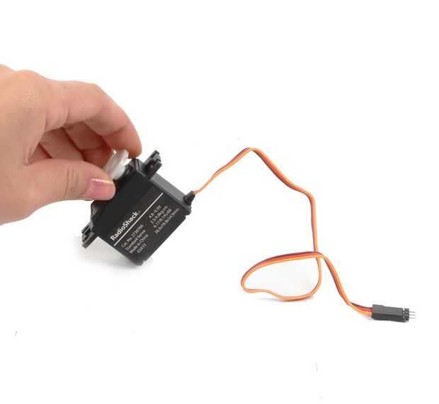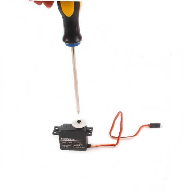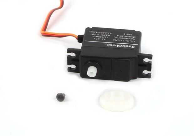 Usar el cuerno del servo más pequeño redondo para este proyecto. Servo cuernos son los objetos de equipo-como blanco que vienen con el servo.
