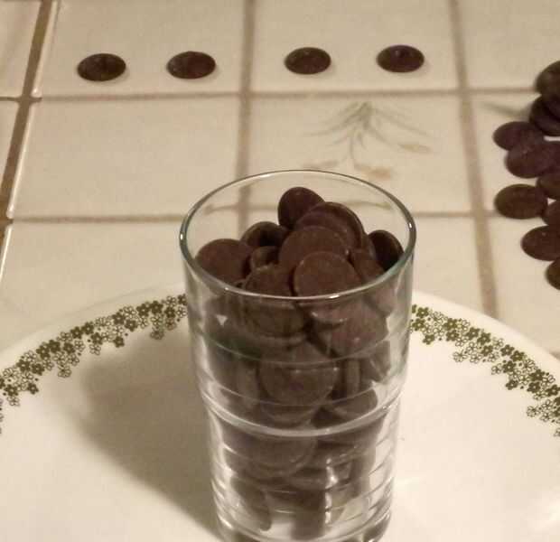 Entonces poner las obleas tantos como quepan en un vaso. Coloque el vaso en un horno de microondas y siga las instrucciones en el paquete a derretir poco a poco con la mitad de potencia. Tómese su tiempo y observe cuidadosamente ya que un error aquí podría quemar el chocolate y arruinar el sabor. Revolver frecuentemente con una cuchara para eliminar grumos.