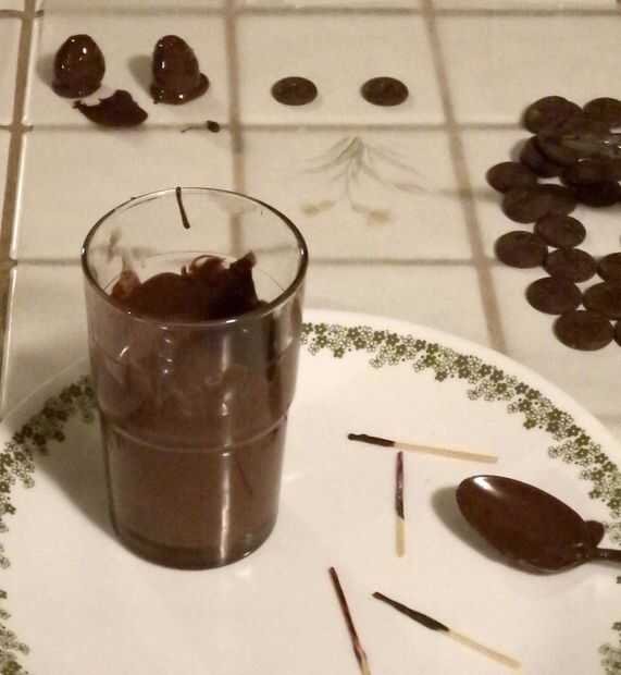 Después de han derretido las obleas en chocolate líquido añada más obleas al vaso y derretir otra vez. Repita hasta que el vaso está casi lleno o te quedas sin obleas.