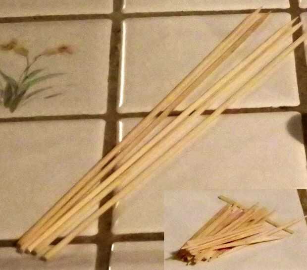 • Pinchos de madera Shish Kabob - no demasiado largo, unas 6 pulgadas o 15 cm está bien. Mina eran más largo, así que los corte con cortador de alambre. No sólo romperlos ya puede hacer que las astillas de madera.