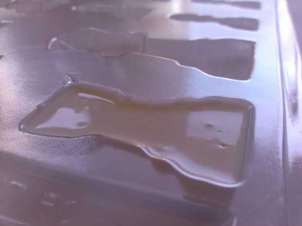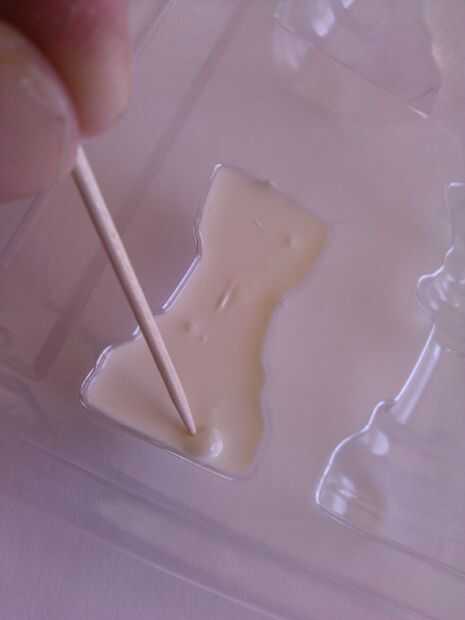 Llene del ajedrez con el chocolate. No llene más allá de los bordes de los depósitos o dará a ti mismo que más trabajo limpieza posterior de las costuras cuando se unen las dos mitades juntas. Habrá formado burbujas de aire dentro de la pieza de chocolate usted va a necesitar a golpee ligeramente el molde sobre la mesa varias veces hasta que vea las burbujas suben a la superficie. Entonces puede hacer estallar las burbujas con un palillo de dientes. Golpear ligeramente el molde sobre la mesa de ayuda a nivel el líquido de chocolate en las piezas, por lo que es una buena cosa que hacer después de llenar cada depósito antes de que el chocolate se endurece a temperatura ambiente. Después de todos los depósitos están llenos, puede colocar el molde en el refrigerador por unos minutos endurecer las piezas. Puesto que el chocolate derretido no es demasiado caliente para comenzar con, se endurecerá bastante rápidamente, incluso endurecer en la Manga pastelera antes de que haya llenado el molde. Cuando eso ocurre, pop la bolsa o frasco en el microondas para derretirse durante 30 segundos.