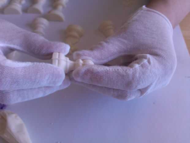 Hay dos formas para unir las mitades para formar una pieza de ajedrez todo.