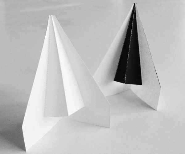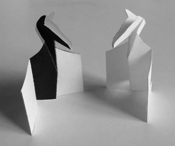 Piezas blancas y negras se invierten: deben ser las líneas de corte y doblez en la parte posterior de las piezas blancas, pero la cara impresa de las piezas negras debe pop-up en la parte delantera.