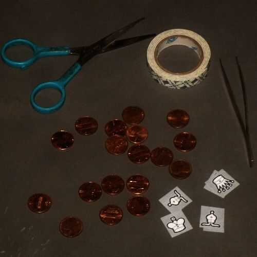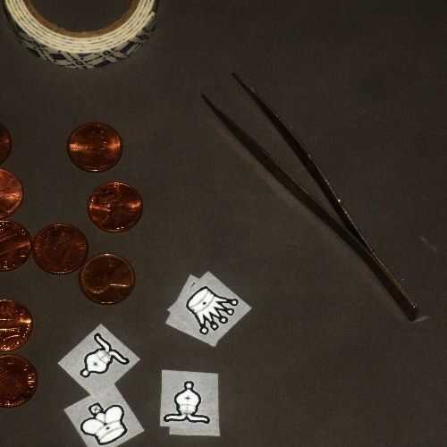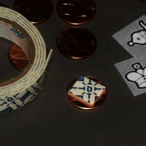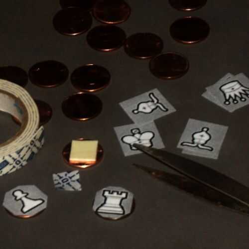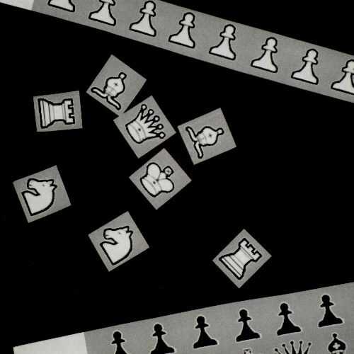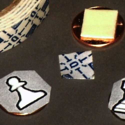Cortar un trozo cuadrado de cinta y pegarla hasta el último centavo. Con una pinza, retire el papel protector de la cinta. Otra vez con las pinzas, sujete al hombre ajedrez de papel impreso y posición sobre la cinta. Presione con el dedo para pegar el papel en la cinta. Repita con todas las piezas.