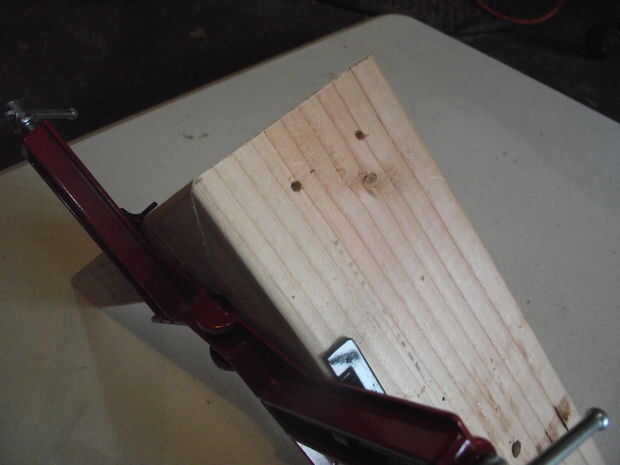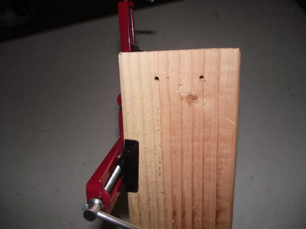 Piloto de taladro dos agujeros aproximadamente 3/4" del extremo de la pieza de un fotograma, asegurándose de ir a través de todo el camino a la otra pieza. Sólo necesita perforar tan profundo que va el tornillo.
