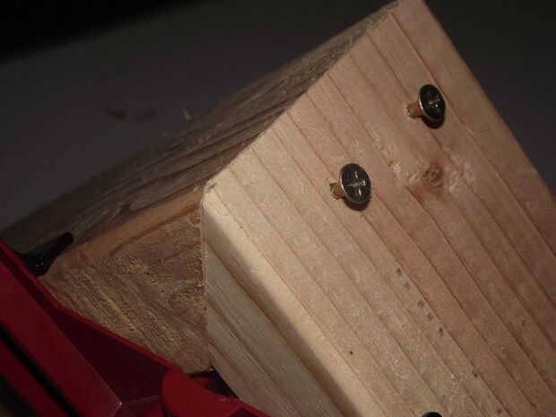 Tornillo de la carcasa de la caja las piezas junto con el piloto de agujeros a taladrar.  Utilizar #8 X 2 "tornillos de construcción. A veces las piezas del marco pueden no alinearse perfectamente cuando totalmente montado para no apretar los tornillos hasta que la carcasa de la caja está completamente montado.