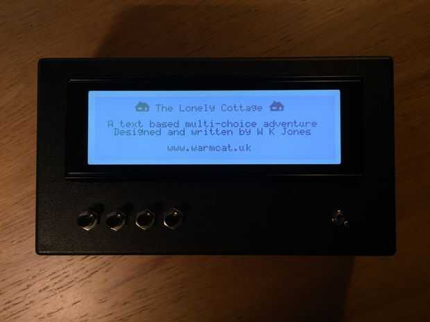 De todos modos, estaba jugando con una pantalla de lcd de 240 x 64 píxeles y un Arduino cuando tuve una gran idea de regalo de Navidad. Qué tal hacer un juego de aventuras simple y utilizar opciones de elección múltiple en lugar de un teclado. (Siempre tenías que conseguir las frases de instrucción texto perfectamente derecho)!