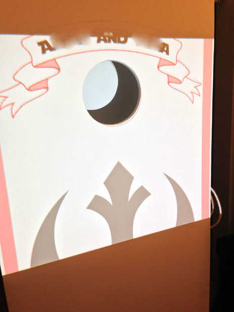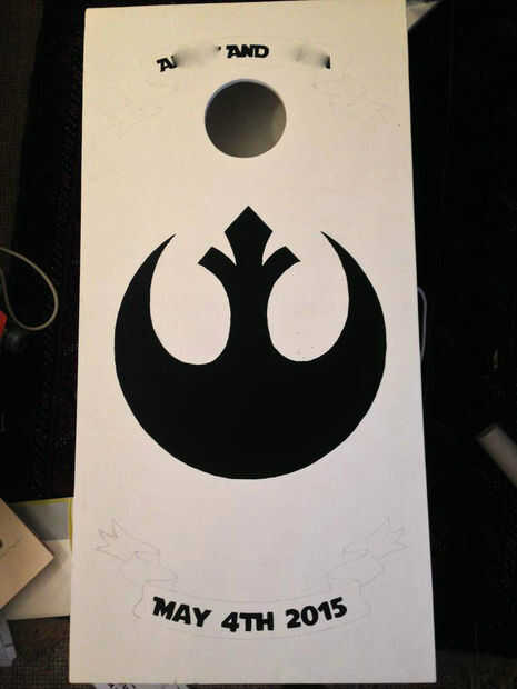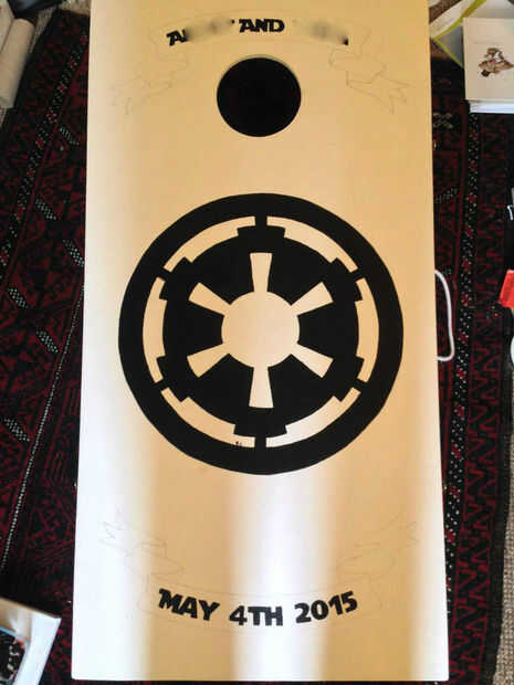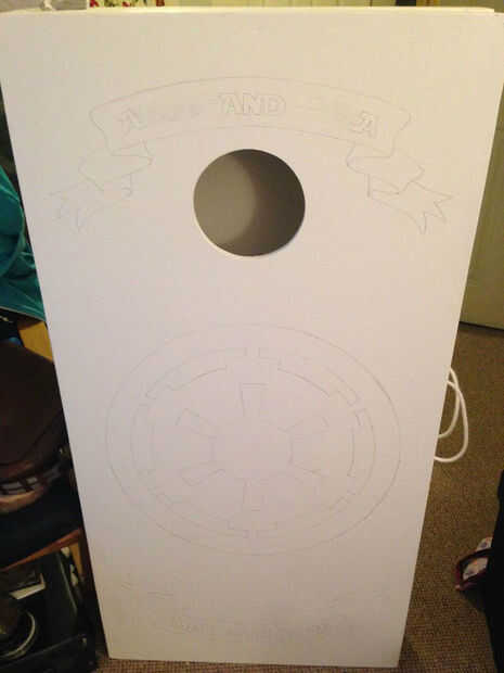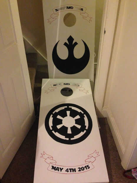De los tres diseños nos fuimos con el diseño medio como conveniente con nuestros sentimientos para la boda mejor. Nos fuimos a casar en mayo la cuarta y que íbamos a tener un hilo de Star Wars por nuestra boda queríamos incluir nuestro fandom de Star wars en los juegos de maíz agujero.
