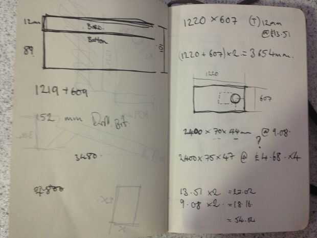 Página 6 de 6 en el libro del bosquejo: los planos y dimensiones cambian muy ligeramente como la yarda de la madera suministra el tablero de madera en 607 mm x 1220 mm cuando el plan original era 609 mm x 1219 mm, por lo que la Junta se cambia por un par de mm en cada lado.