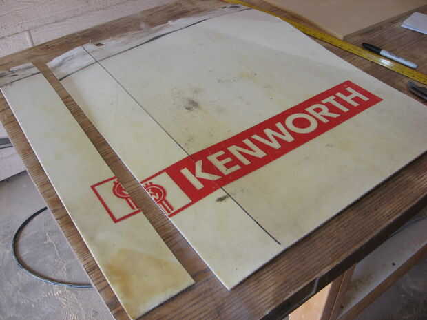 El círculo y semicírculo más grande están hechas de pedazos de mudflap viejo.