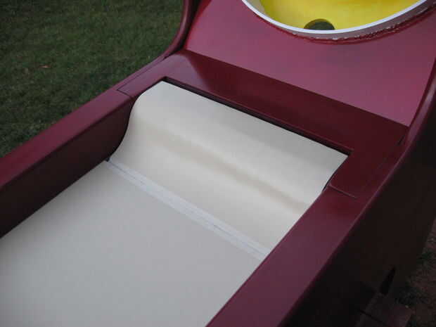 El borde delantero del salto se une a la rampa con un trozo de cinta adhesiva. (El color de la rampa y salto fue elegido para que coincida con la cinta).