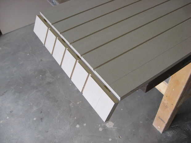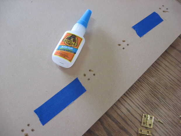 Las bisagras fueron unidas por pre-taladrar los agujeros, squirting un par de gotas de pegamento en los agujeros perforados para endurecer el material y luego atornillar en su lugar. (Este es un viejo truco de modelado de avión R/C). No estoy seguro si era necesario en este caso, pero he aprendido no poner demasiada confianza en MDF. Puede ser materia delicada para trabajar con.