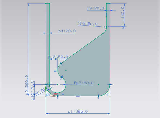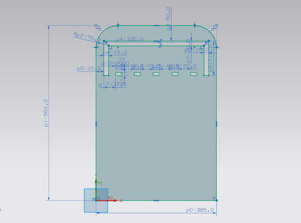 5. Corte una forma rectangular de 20 cm x 38,5 cm con redondeos con un radio de 7 cm (Fig. 7) de madera contrachapada de 3 mm de espesor.
