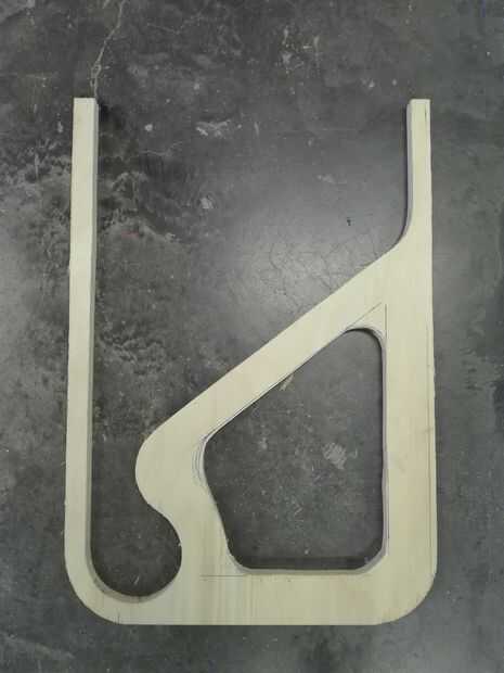 1. Corte las dos primeras formas (Fig. 1 y 2) de madera contrachapada de 18 mm espesor con una sierra de calar o una sierra de banda.