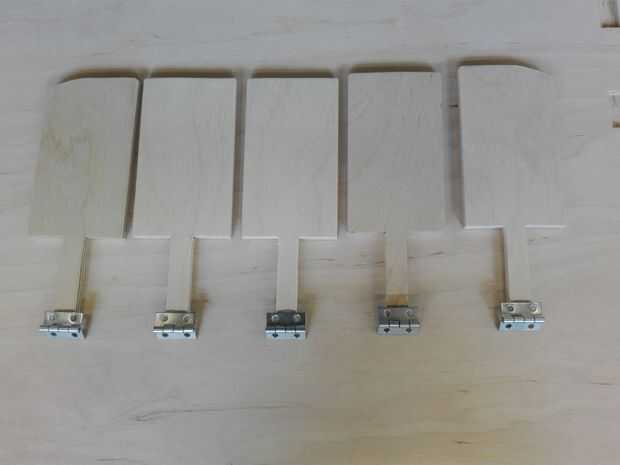 Estas bisagras pequeñas se pegan a la madera con resina de 5 minutos.