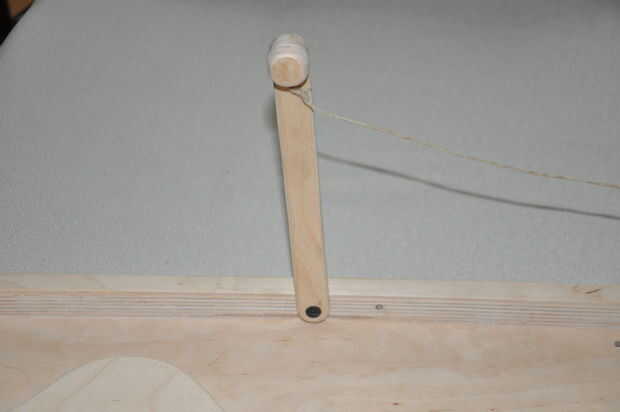 9. Inserte una cuerda fina que conecta el orificio en el triángulo y el agujero de la manija (Fig. 3 y 6).