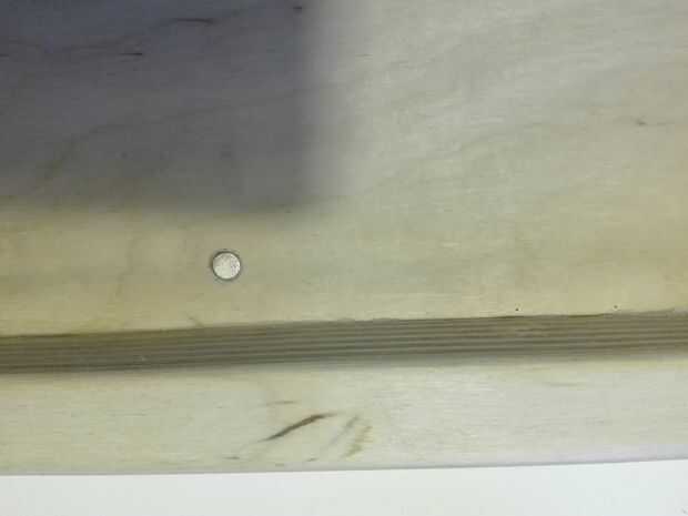 7. Inserte un segundo imán de disco de neodimio de 4 mm en el playboard, para que este imán está alineado con el imán en la empuñadura cuando la manija es cerrada (Fig. 5). Esto hará que mantengas la manija y la cuerda cerrada y en lugar cuando la playboard es transportado o almacenado (Fig. 1).