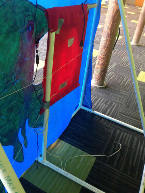 La clave es que el fieltro debe de alguna manera ser separado de su lona. Tiene los sensores conectados. Si lo conecta directamente a la lona, se arriesga a ser "sensible" y conseguir un montón de lecturas positivas falsas cuando alguien golpea la lona en lugar de la boca.