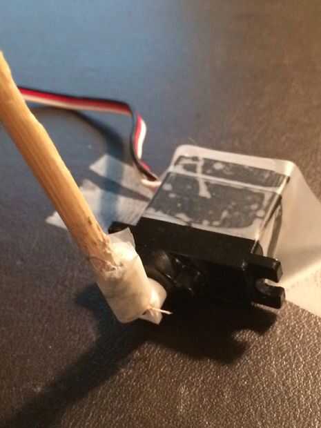 me gustó mucho esta parte. Básicamente, he cableado un servo hobby de un viejo avión RC y conectarse a jingle bells. Cuando un jugador gana el juego es movimiento, luces y sonido que me hizo muy feliz. La placa bien acabada destinados los cables encajan muy bien en un extremo del servo, pero estoy seguro de que esto se podría lograr con alguna grabación con tacto o incluso una pistola de soldar (si desea mantener el juego) por cable el cable de servo negro a la tierra, el rojo a una fuente de alimentación de 5v, y el blanco a un análogo de la salida pin en Arduino (análogo se escribe con mayúscula porque hace un tiempo me había dado cuenta de que estaba tratando de analogWrite para un pin digital). Análogo se observa en su Arduino con un ~ junto al número. Luego twisty atado algunos jingles para una brocheta y grabado el pincho en el brazo del servo. Es así de simple!