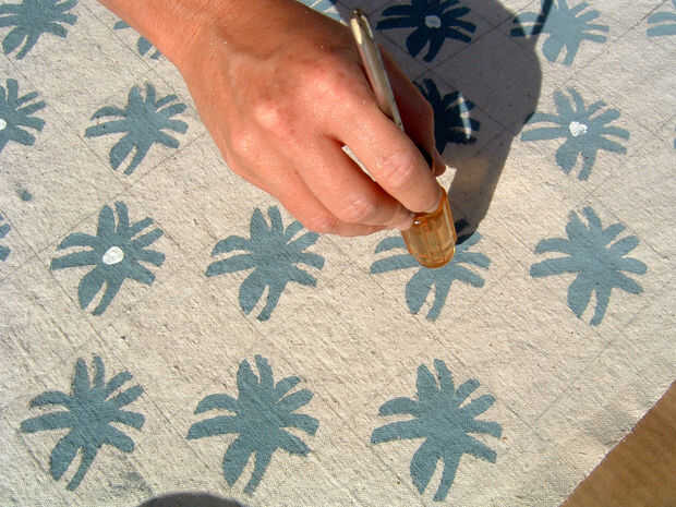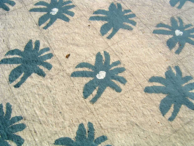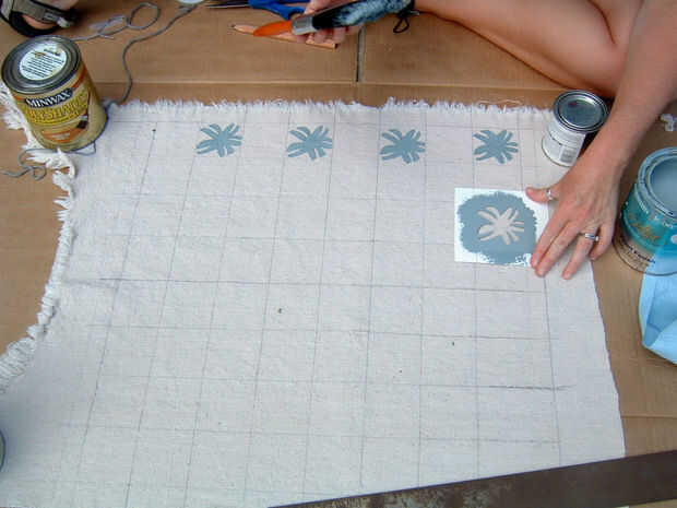 Podría pintar plazas, pero todo el mundo hace plazas, así que ¿por qué no utilizar una imagen en su lugar? Nos libre un 2,5 en la caja de la camisa de flores y luego cortar la flor, dejando intacto el espacio negativo. Con un pincel y pintura, dab la pintura en la galería de símbolos en las casillas apropiadas. Tenga cuidado de no salpicar la pintura. Tal vez deba dejar que la pintura seca en su plantilla después de que has hecho la mitad de las plazas porque la pintura puede meterse debajo de la plantilla. Con la culata de su destornillador, aplicar un pequeño toque de color diferente de pintura en el centro de tus flores.
